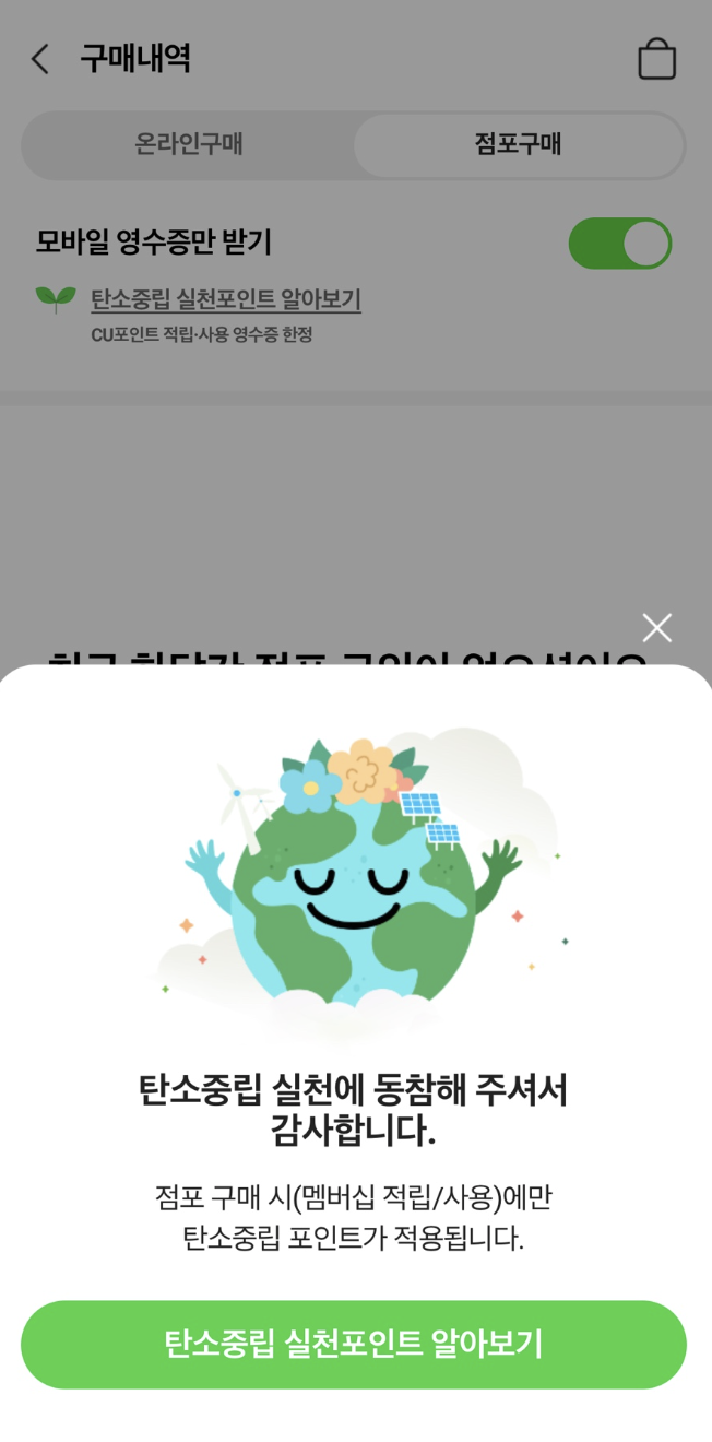 예를 들어 탄소중립실천포인트 회원 가입을 했을 경우 이마트에서 장을 보고 전자영수증을 발급 받으면 자동으로 1건당 100원의 포인트가 쌓입니다.